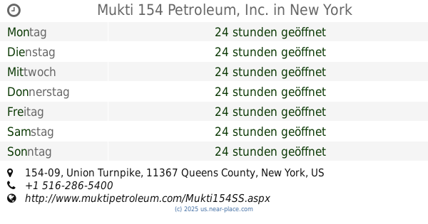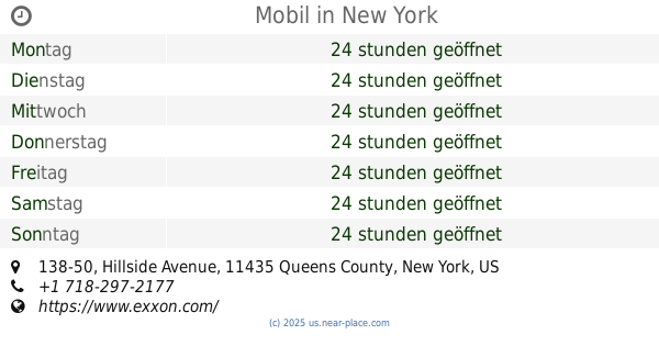 | Dienstag | 24 stunden geöffnet | |||||