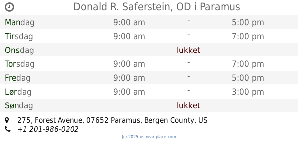 275, Forest Avenue, 07652, Paramus, Bergen County, US Соединенные Штаты Америкиkontakter telefon: +1 201-986-0202